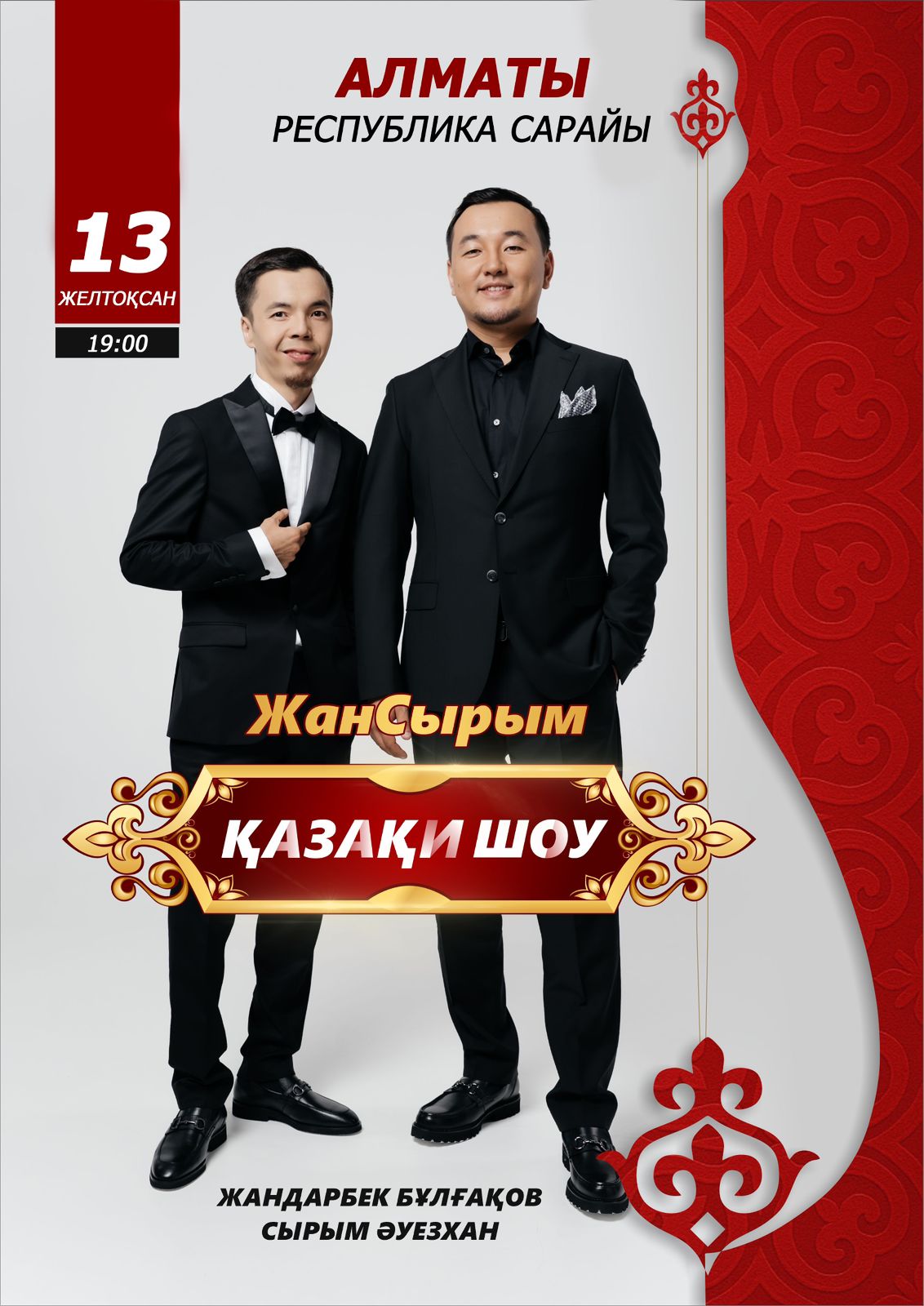 Сіз бұл концертте Жандарбек Бұлғақовтың және Сырым Әуезханның бұрын сонды байқамаған өнерлерін,басқа да қырларын көріп білетін боласыз.