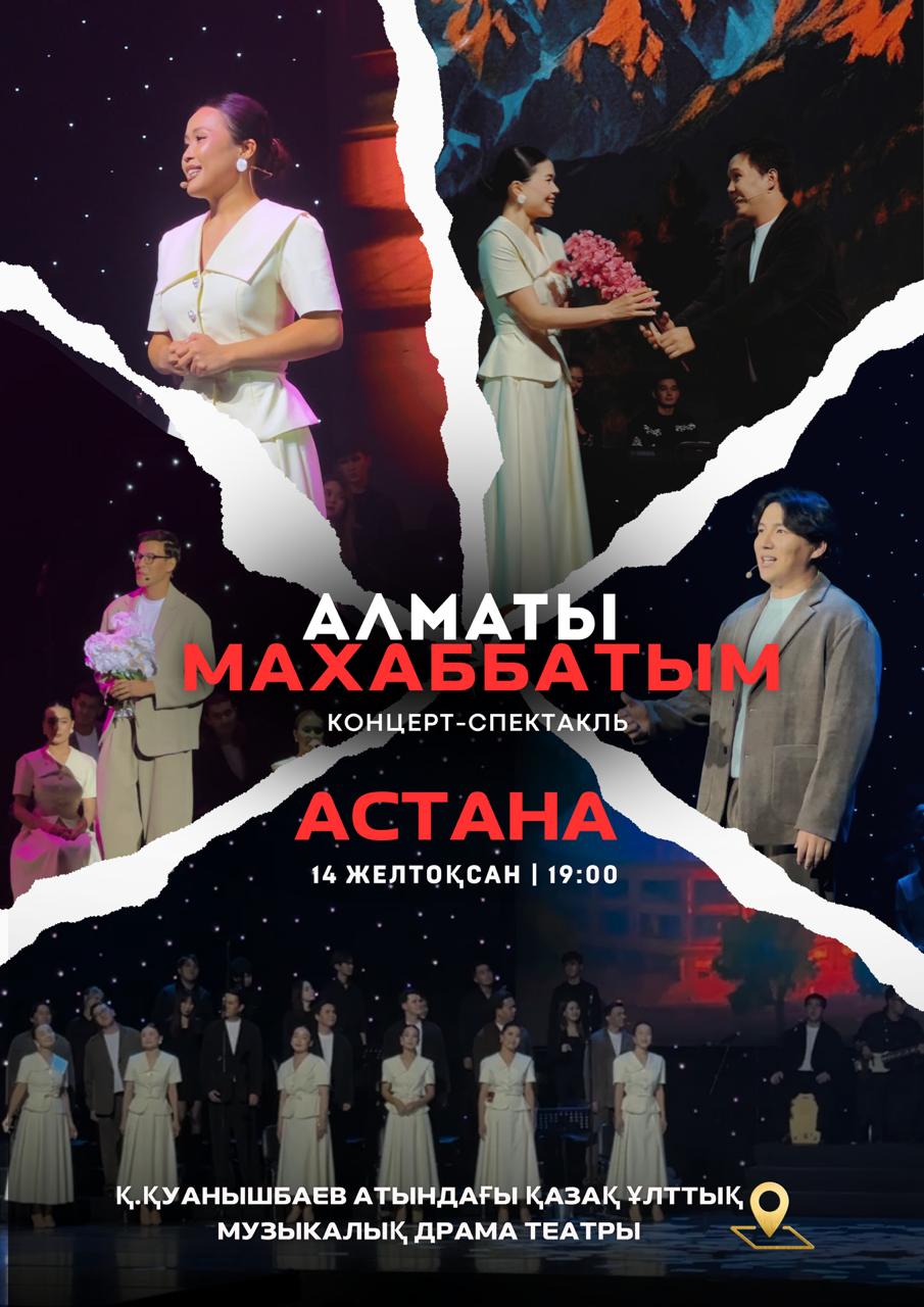 “Алматы махаббатым” концерт-спектакльі - арман қуып әсем қала Алматыға келген студент жастардың басынан өткен қызықты оқиғалары мен үлкен қала табыстырған махаббаттары, ару қала Алматының ғажайыпқа толы сұлулығы жайлы ән-поэзиядан құралған. Негізінен, қала күніне арнап дайындалған концерт-спектакль болды. Кейін көрерменнің ыстық ықыласына ие болып, театр репертуарына қосылды.