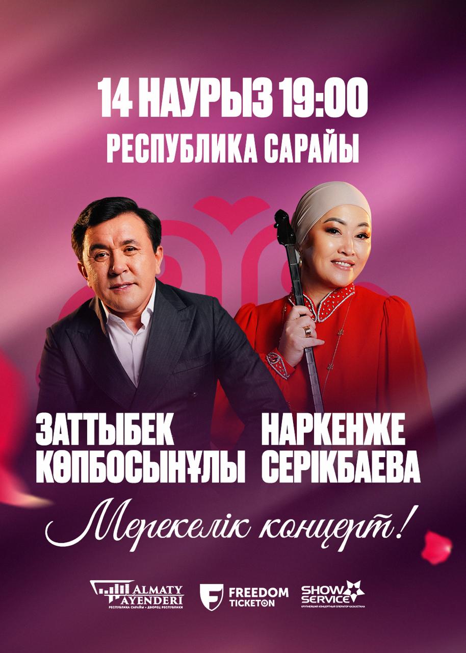 Алматыда Наркенже Серікбаева мен Заттыбек Көпбосынұлы аналар мен өнер сүйер қауымға арналған үлкен мерекелік концерт өткізеді.