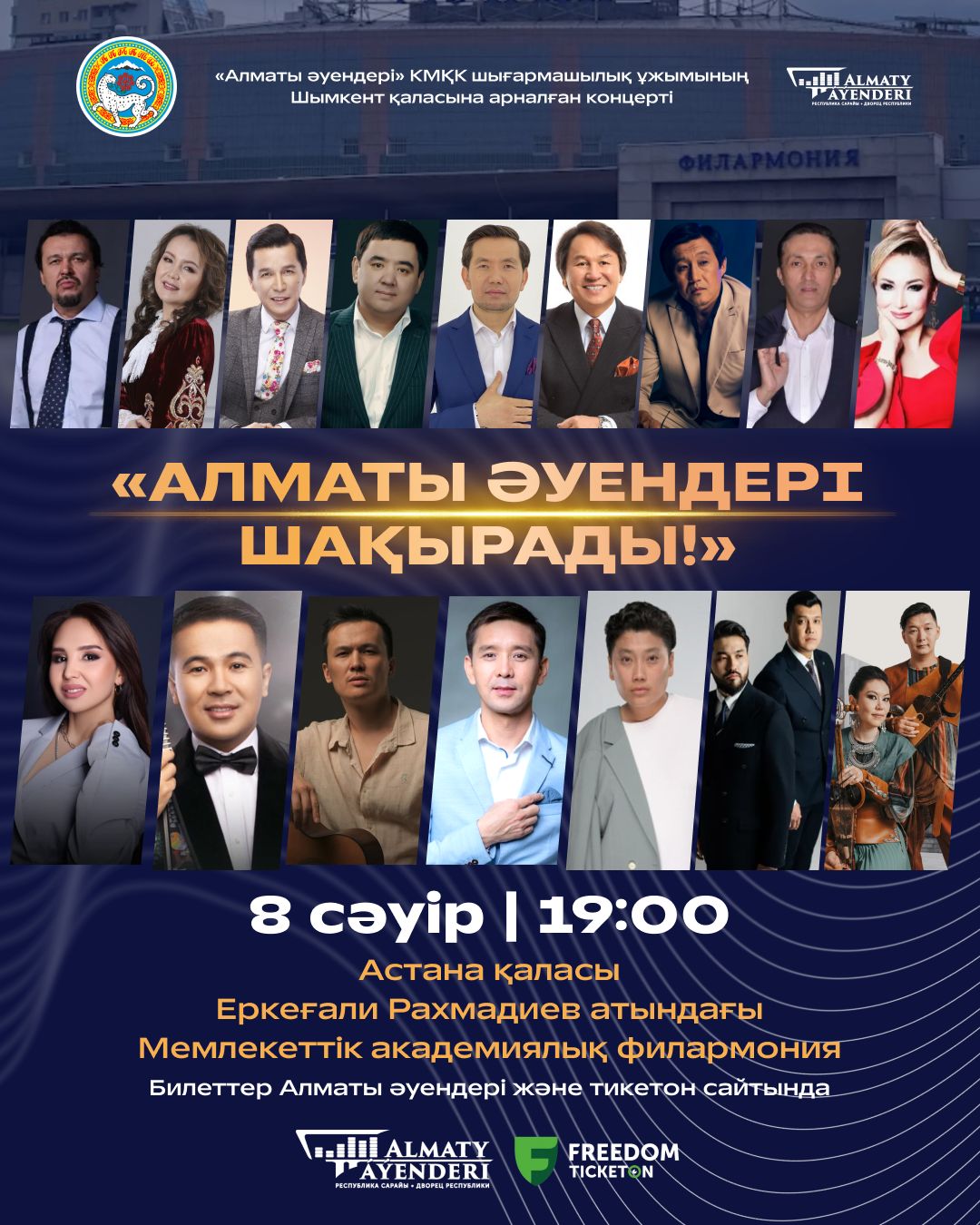 Бұл концертте сіздер үшін сахна төрінде Қазақстан эстрадасының жарқын жұлдыздары: