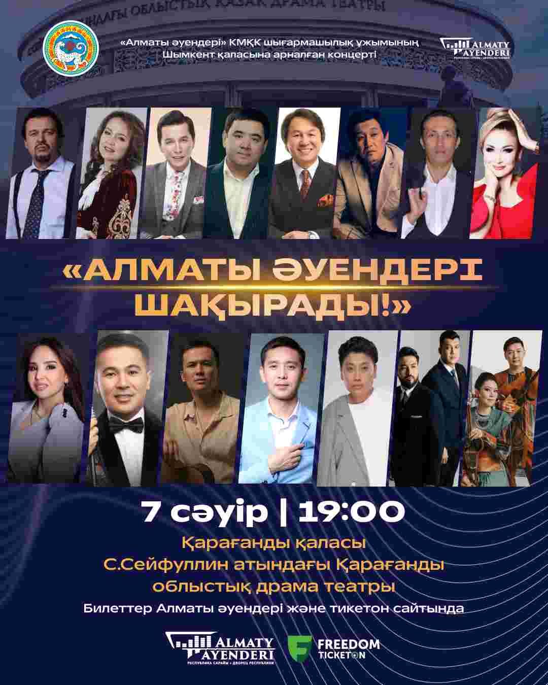 Бұл концертте сіздер үшін сахна төрінде Қазақстан эстрадасының жарқын жұлдыздары: