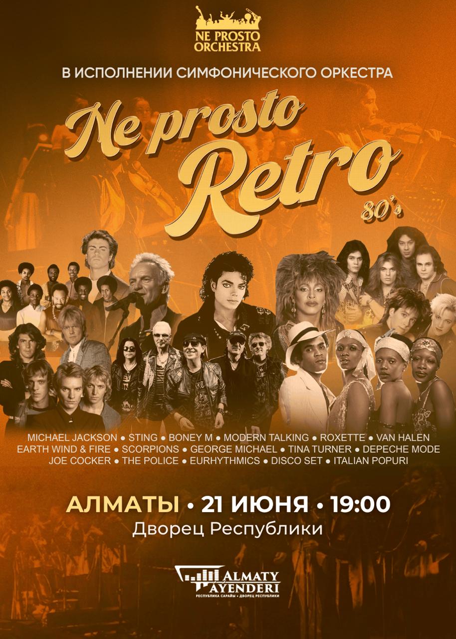 В исполнении большого симфонического NE PROSTO оркестра, хора и солистов прозвучат самые популярные известные хиты 80-х годов из репертуара: