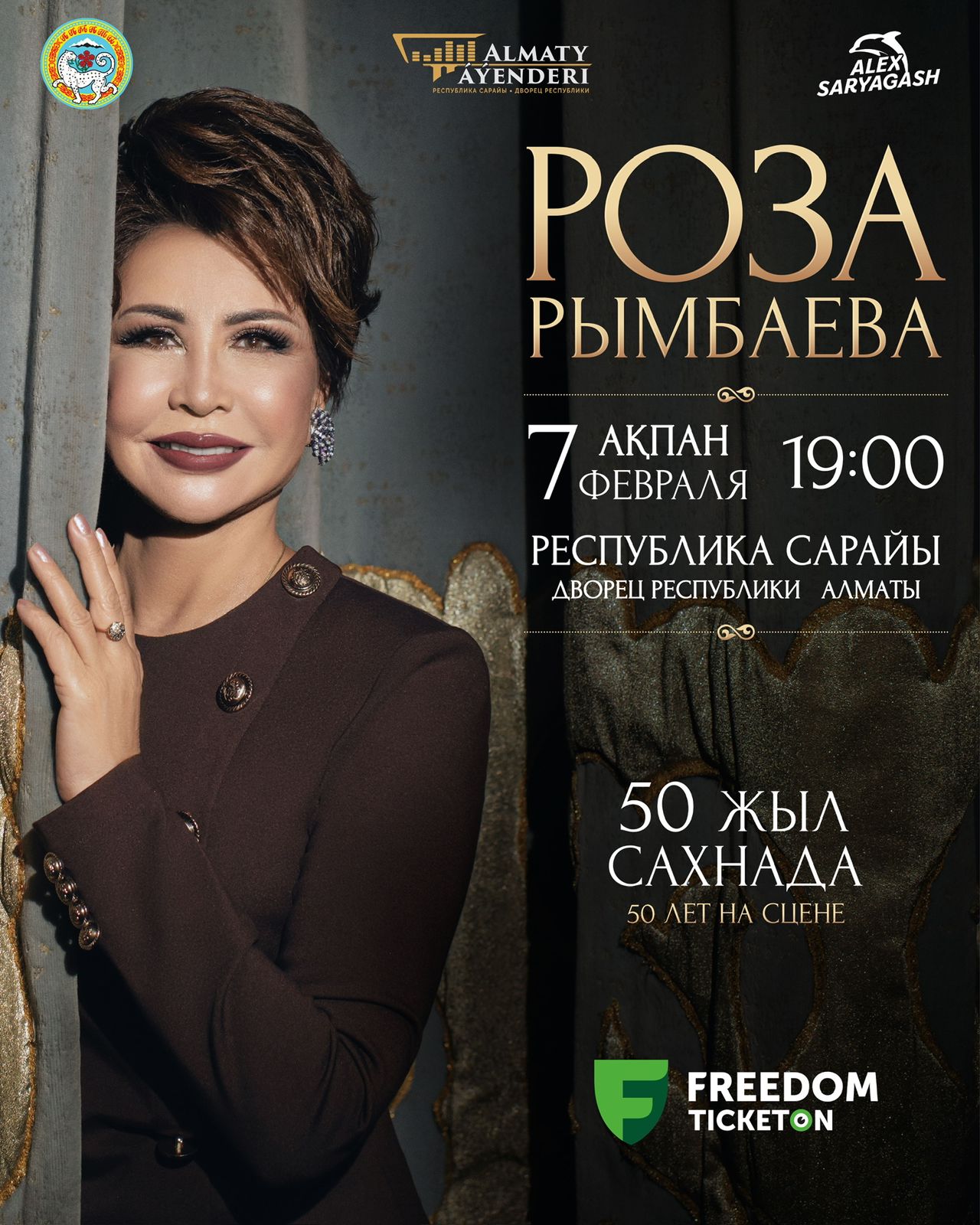 Роза Рымбаева отмечает 50 лет творчества на сцене! Легенда и голос поколений дает свой отчетный юбилейный концерт. Главные хиты и не только, в сопровождении лучших музыкантов страны и эстрадно-симфонического оркестра “Al jazz Symphony” ждут вас! 100 % живой звук, неожиданные гости и вечная музыка в исполнении главного голоса страны - событие которое нельзя пропустить. Алматы,